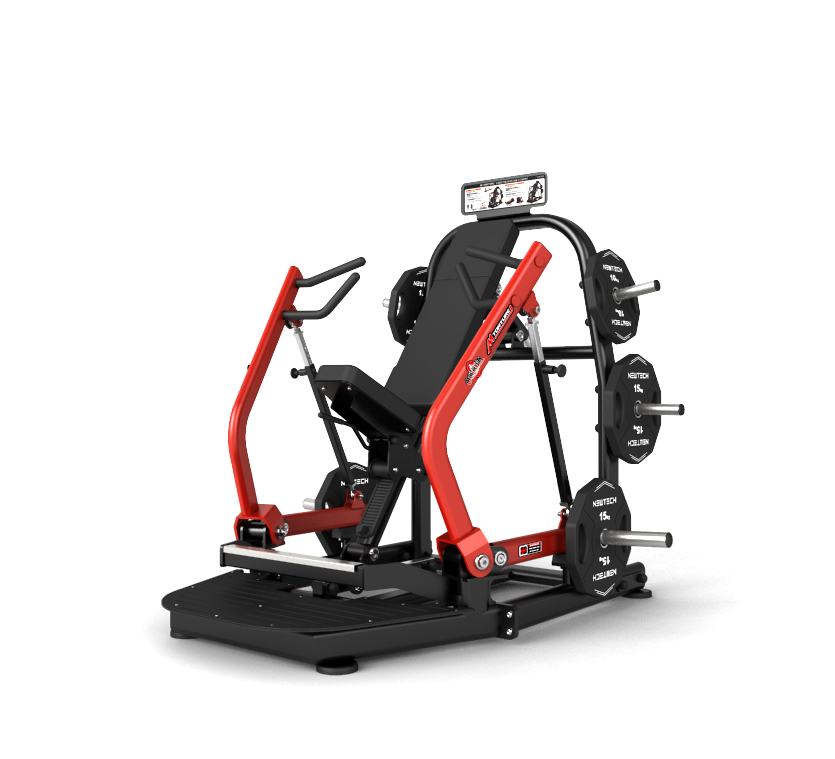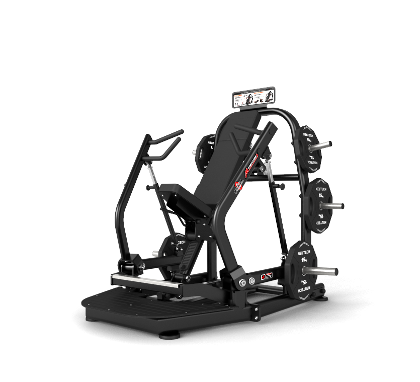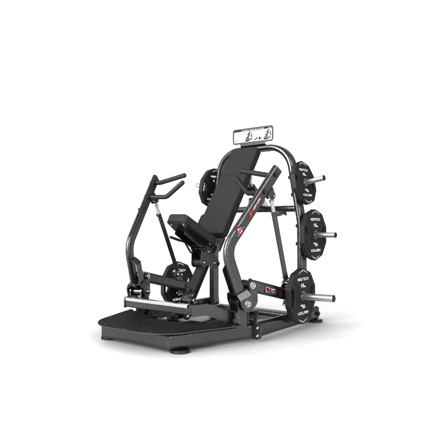 シートの角度は4段階に調節でき、フラットからデクラインの同時プレスで大胸筋中部・下部を効果的に刺激します。
