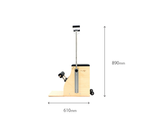 LIMコンボチェアーはサイズをよりコンパクトにして、ペダルの軌道、スプリング張力はより効果的にピラティスを実践できるように設計されています。